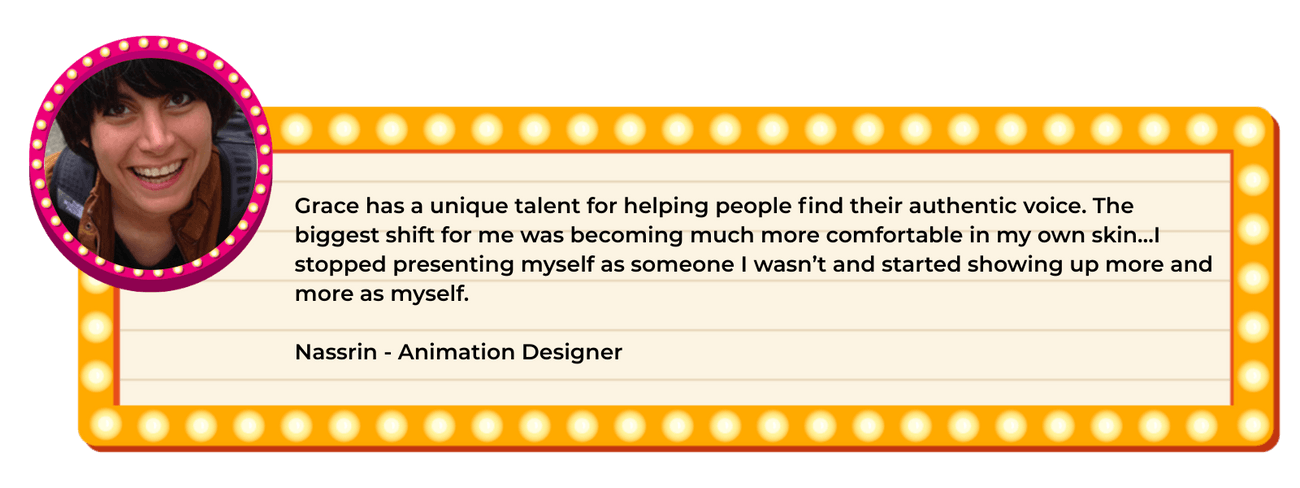 Grace has a unique talent for helping people find their authentic voice. The biggest shift for me was becoming much more comfortable in my own skin…I stopped presenting myself as someone I wasn’t and started showing up more and more as myself.